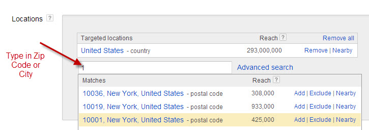 Google Adwords allows you to show your ads around geographic areas that only apply to your business. You can break them down by State, City or Zip Code allowing you to truly target the audience that makes the most sense for your business.