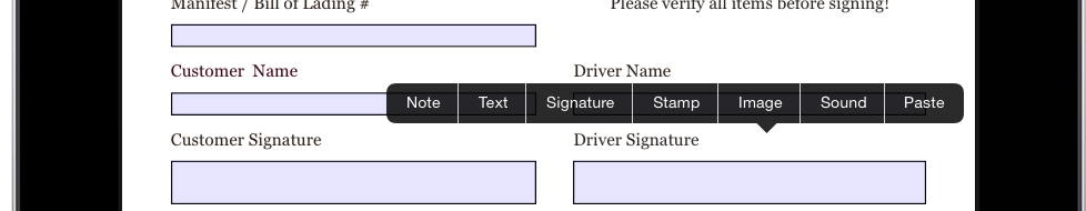 No problem! Just tap and hold on the screen and several options appear, including getting a signature.